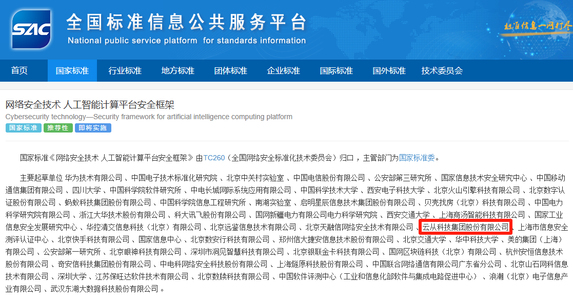 近日,國家標(biāo)準(zhǔn)GB/T 45958-2025《網(wǎng)絡(luò)安全技術(shù) 人工智能計算平臺安全框架》正式發(fā)布。該標(biāo)準(zhǔn)由全國網(wǎng)絡(luò)安全標(biāo)準(zhǔn)化技術(shù)委員會歸口管理,華為技術(shù)有限公司牽頭,云從科技作為核心起草單位之一,深度參與了標(biāo)準(zhǔn)制定工作。 這項(xiàng)將于2026年2月1日正式實(shí)施的國家標(biāo)準(zhǔn),為人工智能計算平臺建立了系統(tǒng)化的安全框架,規(guī)定了安全功能、安全管理和角色安全職責(zé),將有效應(yīng)對硬件漏洞、訓(xùn)練數(shù)據(jù)泄露、對抗樣本攻擊等新型安全威脅。
